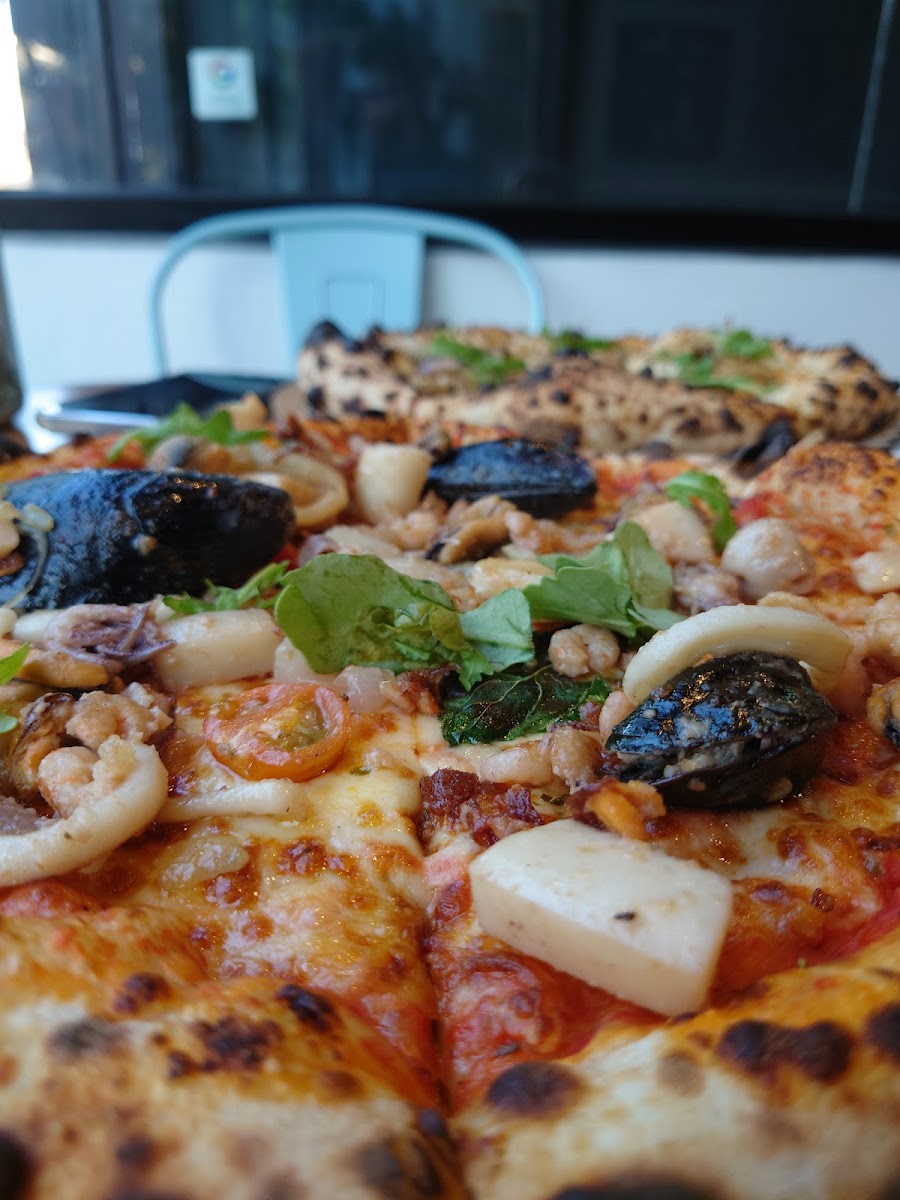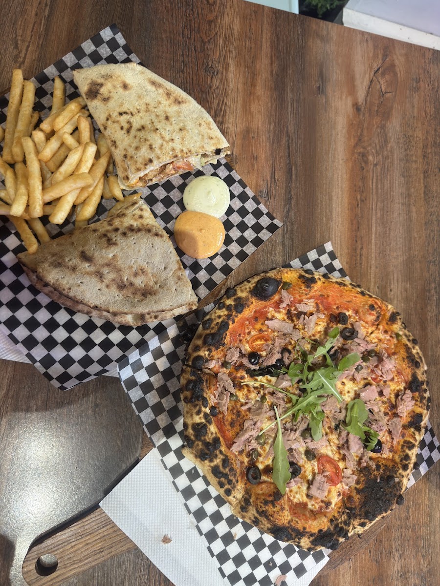 The menu offers a mix of classic and slightly adventurous pizzas alongside stuffed baguette sandwiches, such as the Baguette Farcie Au Poulet Grillé and the Veggie Panuozzo, which utilize fresh vegetables, quality cheeses, and house-made dough. Seafood options like the Pizza Fruit de Mer bring a taste of the Mediterranean coast, which adds an interesting local twist to the typical Montreal pizza scene.
